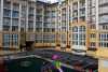 Строительство первой очереди комплекса было завершено в этом году. Для его остекления были использованы оконные конструкции «Энвин ЭКО 60» с внешней ламинацией от международного концерна «Декёнинк». В окнах используется 4-х камерный профиль, который обеспечивает тепло и комфорт в помещении, а также установлен самый современный камерный уплотнитель из термоэластопластов. Благодаря наличию камеры такой уплотнитель обладает улучшенными теплосберегающими свойствами. Его срок службы рассчитан более чем на 20 лет, и он не требует ежегодного ухода в отличие от обычных резиновых уплотнителей. Кроме того, окна оснащены двухкамерными стеклопакетами, функцией микропроветривания, защитой от шума и уличной пыли.